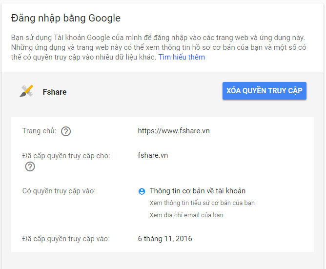Để xóa quyền truy cập, người dùng chọn mục "