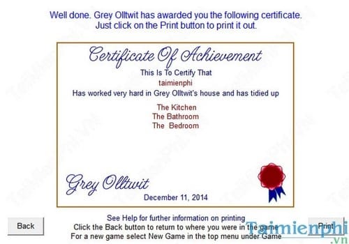 Bạn phải đối mặt với một ngôi nhà bừa bộn cần phải dọn dẹp lại từng phòng một. Hãy nhấn chuột vào từng đồ vật để thu dọn lại. Có 6 căn phòng cần dọn dẹp lại. Sau khi hoàn thành bạn sẽ được cấp giấy chứng nhận. Mỗi trò chơi đều được tự động lưu lại với tên của người chơi vì thế bạn có thể tiếp tục chơi.